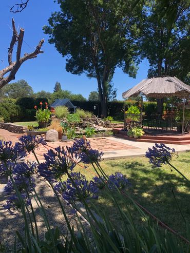 The sound of the waterfall of the gorgeous Koi pond provides a wonderful ambiance.